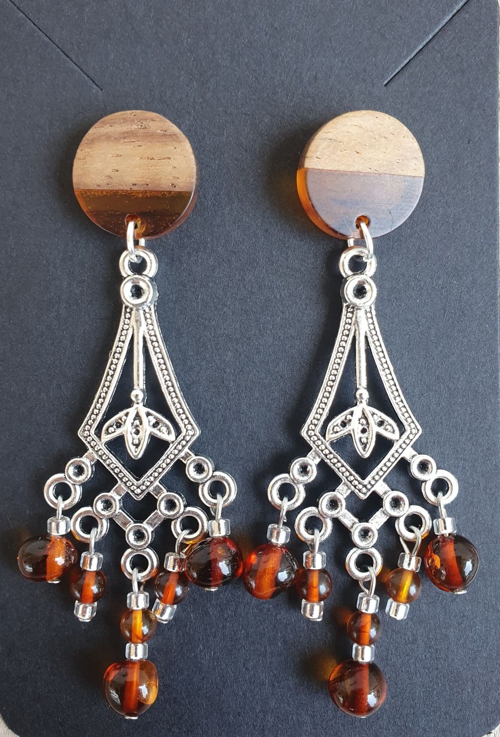 Attache Résine Orange paillette or et bois, clou acier inoxydable